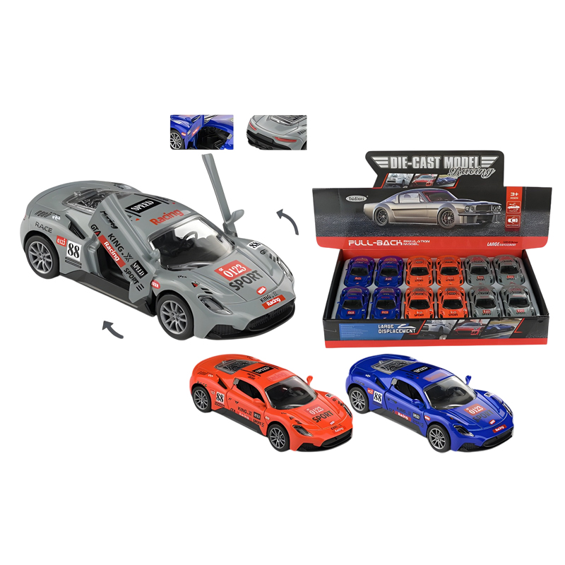 Η αγαπημένη συνήθεια των παιδιών είναι να παίρνουν μαζί τους τα παιχνιδάκια τους καθώς δένονται μαζί τους. Τα μεταλλικά αυτοκινητάκια εξυπηρετούν ακριβώς αυτό το σκοπό καθώς είναι μικρά και πολύ ανθεκτικά στα χτυπήματα. Διαθέτουν αυτοκούρδιστη κίνηση pullback για ωραίες βόλτες καθώς ενισχύει και τη κινηκότητα του παιδιού να το κυνηγάει και να το κουρδίζει από την αρχή. Τα αγωνιστικά αυτοκίνητα είναι διαθέσιμα σε 4 χρώματα και ανοίγουν οι πόρτες τους.