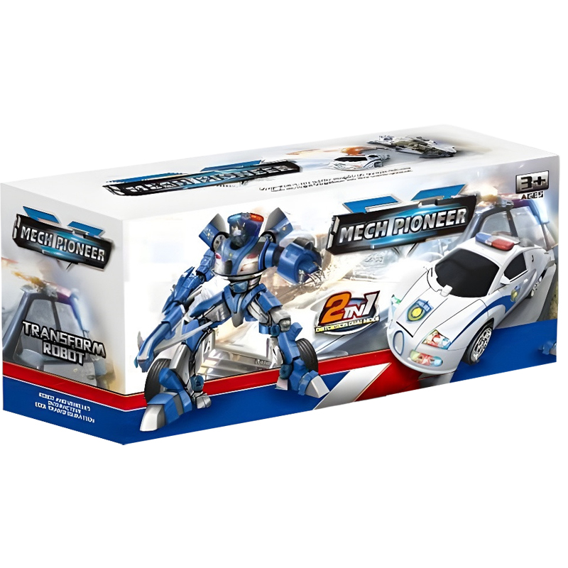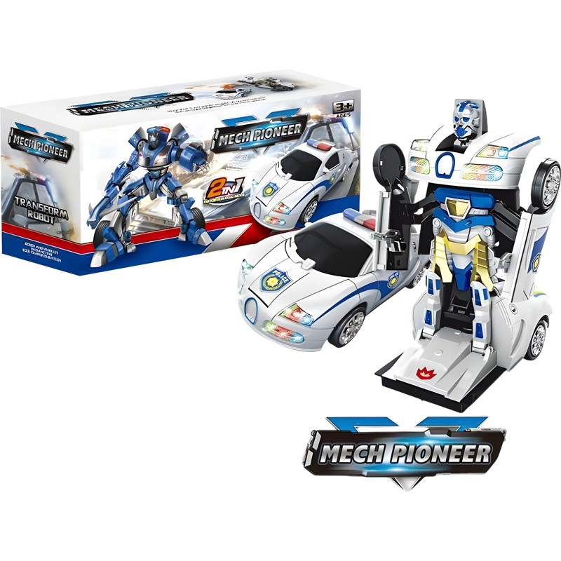 Το απόλυτο μετασχοιματιζόμενο ρομποτ είναι εδώ για να σε συναρπάσει. Αν αγαπάς τα αστυνομικά αυτοκίνητα αλλά συγχρόνως σου αρέσουν και τα τρομερά ρομπότ, τότε αυτό είναι το παιχνίδι που σου ταιριάζει. Διαθέτε φώτα και ήχους που κινείται ελεύθερα στο χώρο και σταδιακά μεταμορφώνεται μόνο του σε ρομποτ. Λειτουργεί με μπαταρίες οι οποίες δε περιλαμβάνονται.