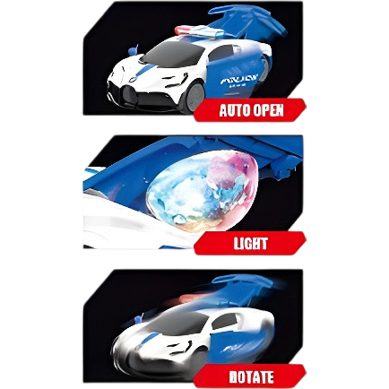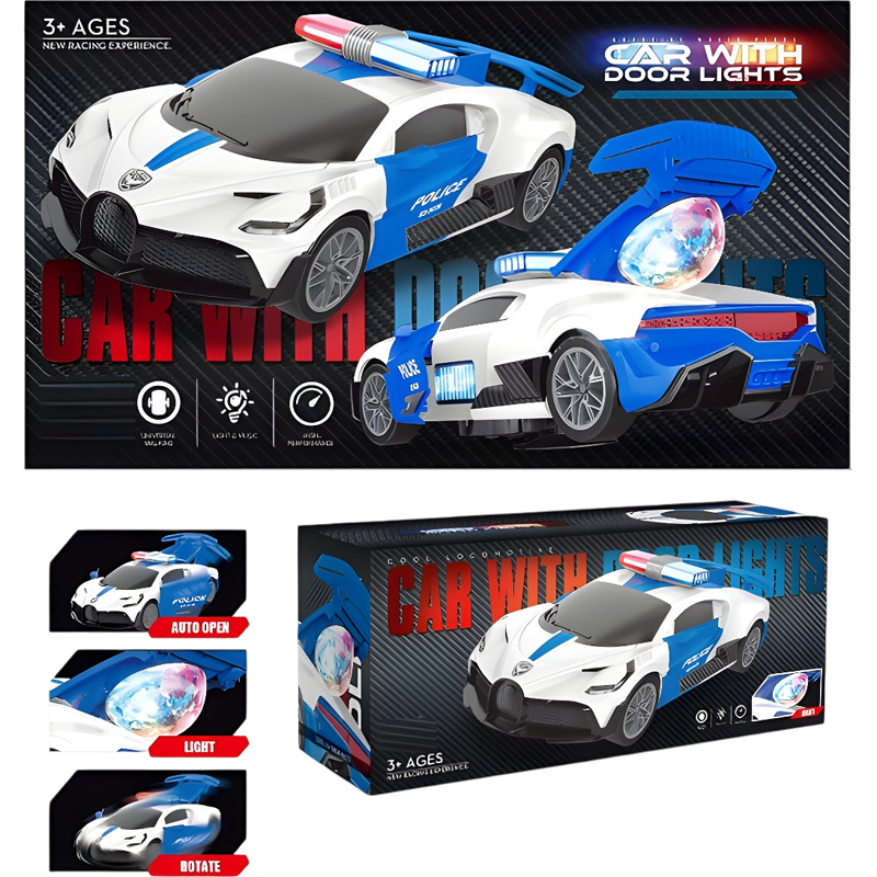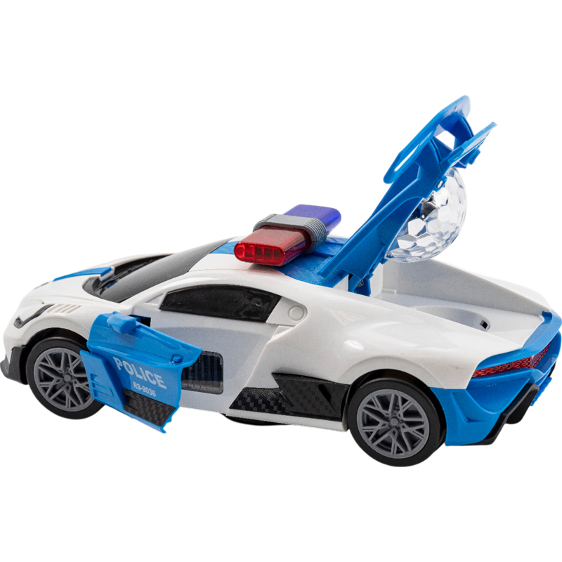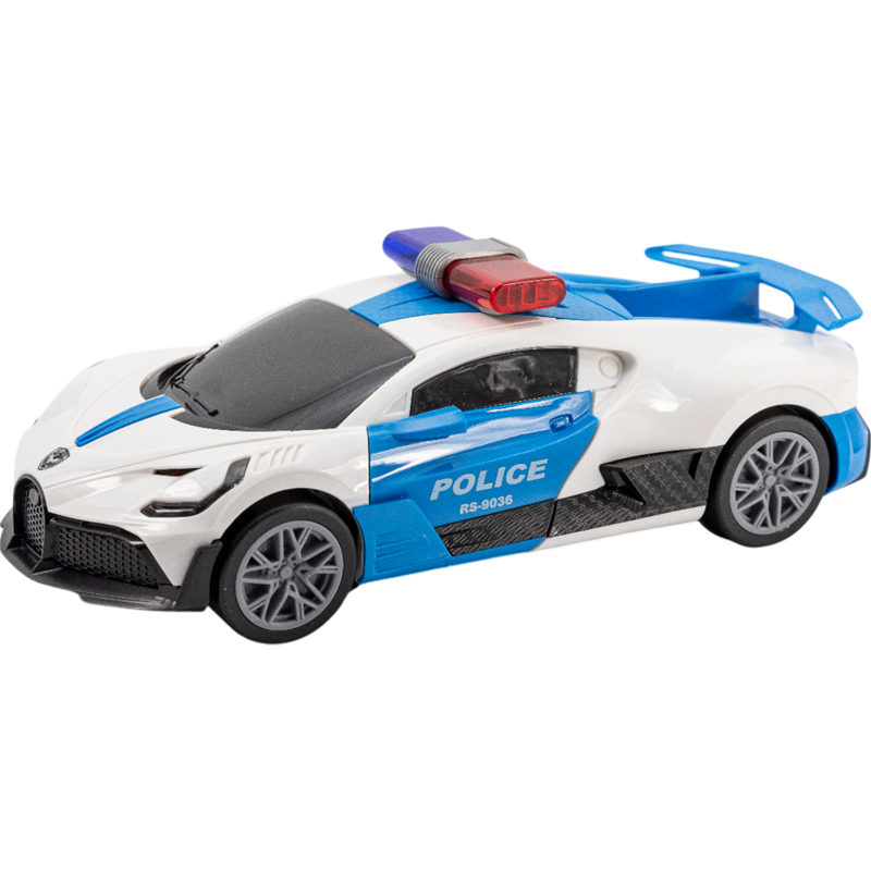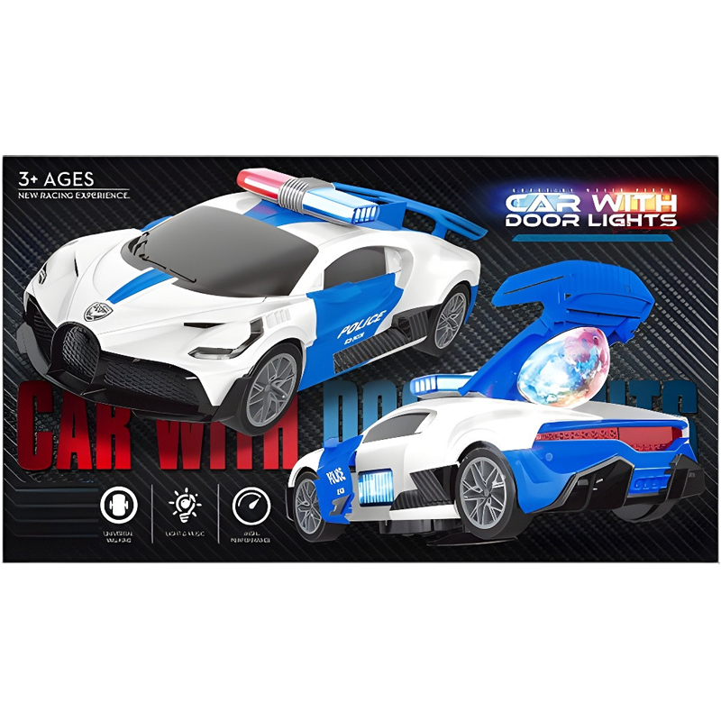 Τα φώτα και η κίνηση πάντα προκαλούν το ενδιαφέρον των μικρών παιδιών, τους ενθουσιάζουν και τους ενισχύουν την επιθυμία να παίξουν και να τα κυνηγήσουν. Το φανταστικό αυτό αυτοκίνητο της αστυνομίας διαθέτει έντονους ήχους ,ωραία φώτα, με ανοιγόμενες πόρτες και κίνηση ελεύθερη μέχρι να βρεί ένα εμποδιο. Λειτουργεί με μπαταρίες που δε περιλαμβανονται.