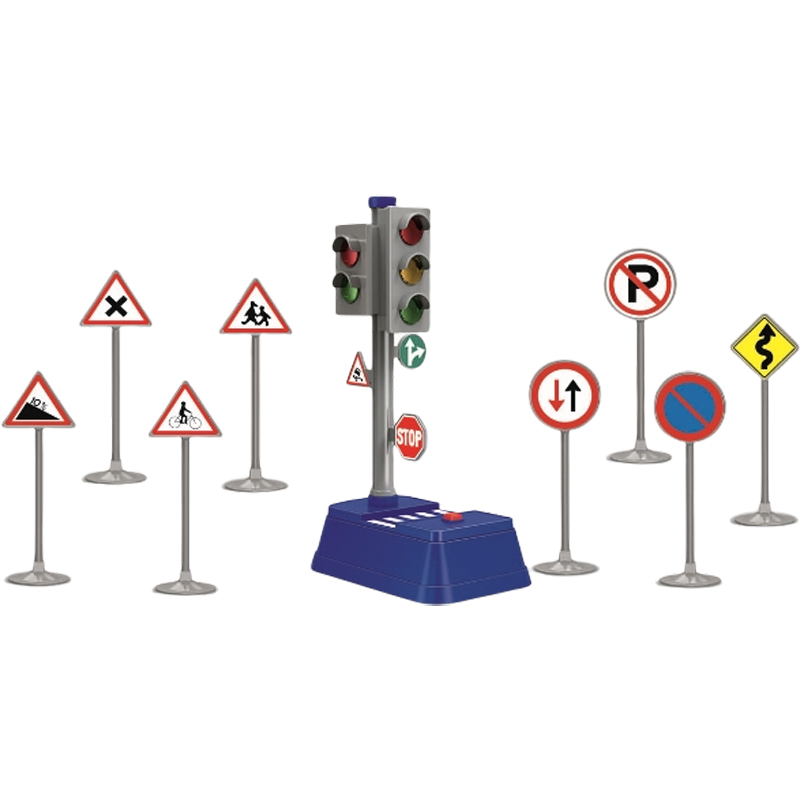 Αν θέλεις να γίνεις ένας υπεύθυνος και σωστός οδηγός , θα πρέπει να γνωρίζεις τους κανόνες οδικής κυκλοφορίας. Βάλε τα αυτοκινητάκια σου στη σειρά και ξεκίνα να οδηγάς, σταμάτα όπου είναι κόκκινο το φανάρι και συνέχισε όταν αυτό γίνει πράσινο. Ο φωτεινός σηματοδότης που περιλαμβάνει η συσκευασία σε βοηθά να γνωρίσεις καλύτερα πως κινούμαστε μέσα στη πόλη. Περιλαμβάνει 8 πινακίδες οδικής κυκλοφορίας. Λειτουργεί με μπαταρίες οι οποίες περιλαμβάνονται.