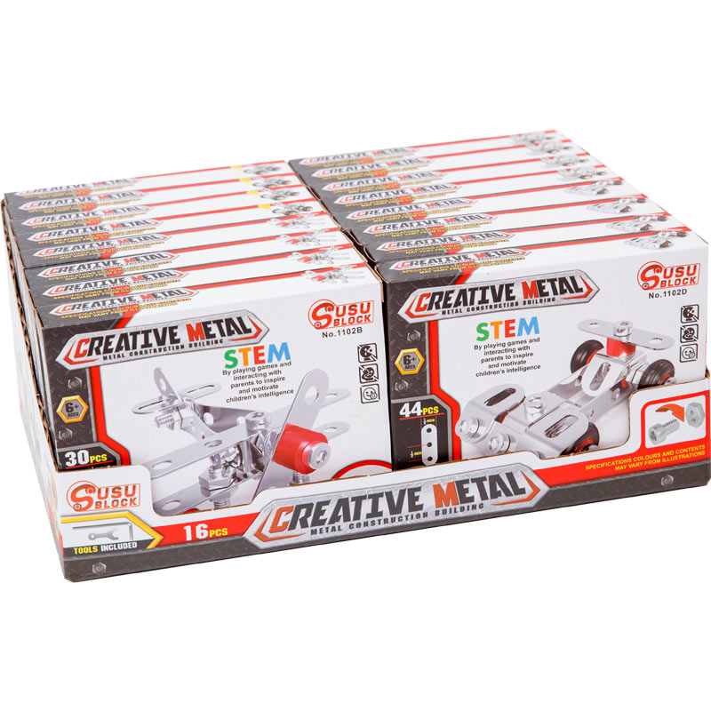 Οι κατασκευές είναι ένα δημιουργικό παιχνίδι που ενισχύουν τη λεπτή κινητικότητα του παιδιού καθώς και την ικανότητα να ακολουθήσει βήμα προς βήμα τις οδηγίες με σκοπό να δει το αγαπημένο του αεροπλάνο ή όχημα να ζωντανεύει μέσα από τα δικά του χέρια. Η χαρά της δημιουργίας είναι το καλύτερο προνόμιο των κατασκευών. Μπορείτε να διαλέξετε όποια μεταλλική κατασκευή επιθυμείτε μέσα από 4 σχέδια.