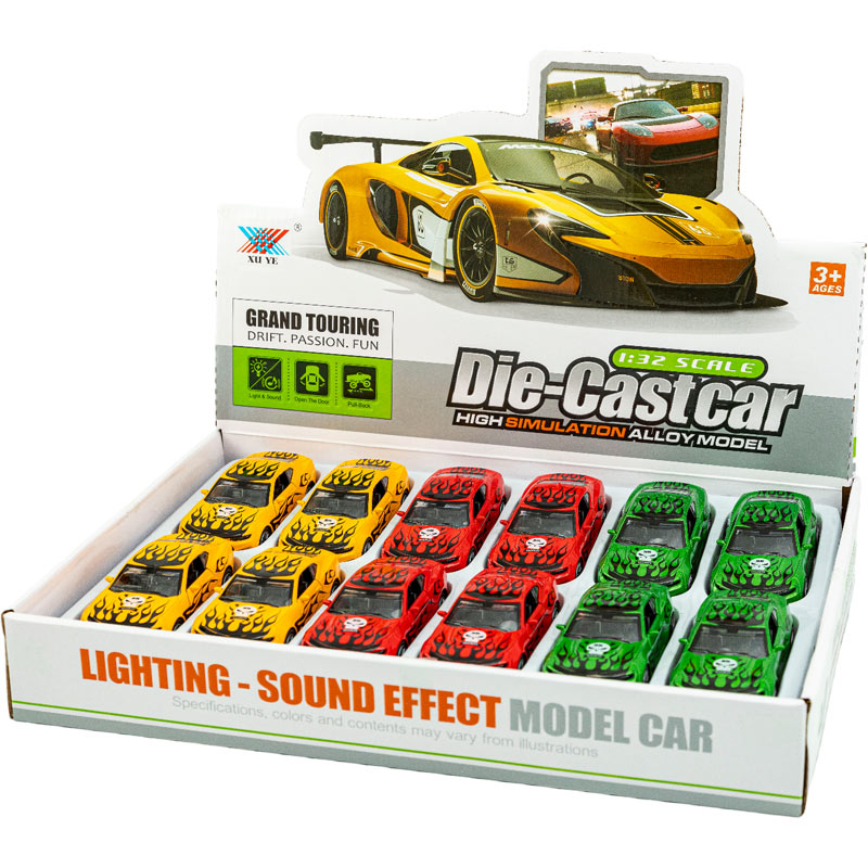 Μεταλλικό Αυτ/το 1:32 Σπόρ Φωτίες Pull Back 3 Χρώματα 12 εκ. Πόρτες-Ηχοι 12άδα