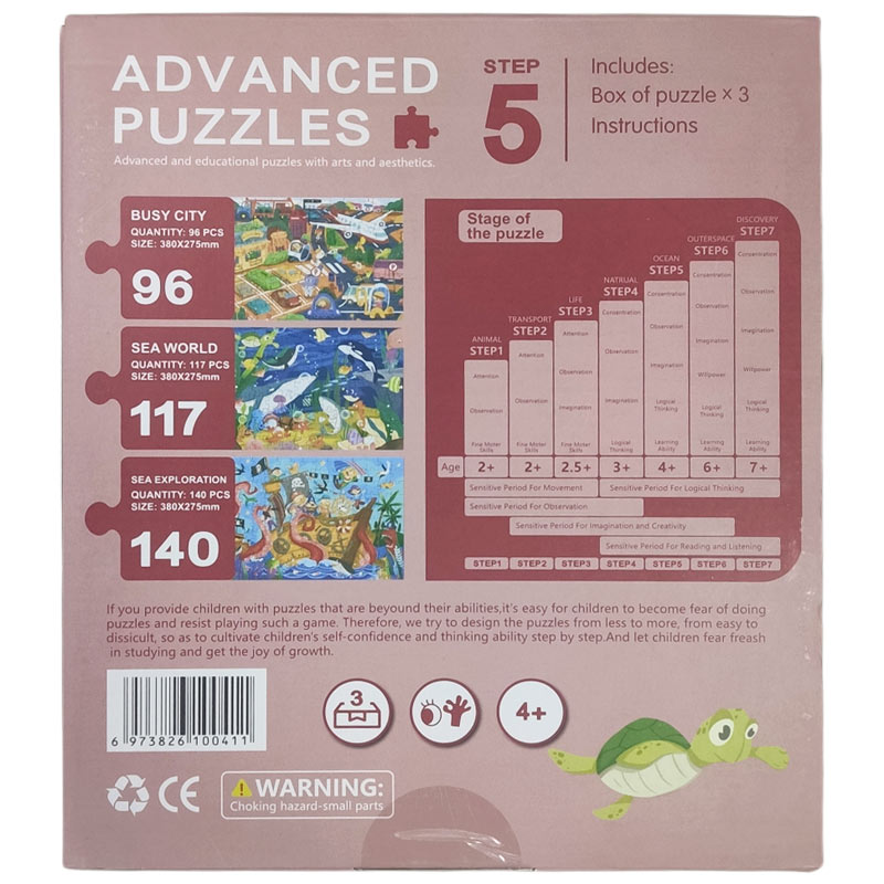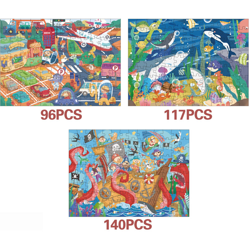 Μια από τις δημιουργικότερες ενασχολήσεις για μικρούς και μεγάλους είναι τα παζλ. Ειδικά τα οφέλη που προσφέρει στα παιδιά είναι πολλά καθώς εξασκούν την λεπτή κινητικότητα των χεριών και τη παρατηρητικότητα τους. Το σετάκι αυτό διαθέται όχι ένα αλλά 3 διαφορετικά παζλάκια με σταδιακή αύξηση κομματιών, από 96 έως 140 . Τα παζλ,έχουν θέματα τους αγαπημένους μας πειρατές.