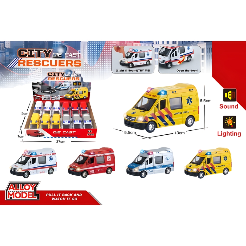 Οχημα Ασθενοφόρο Με Φώτα Και Ηχους 13 εκ. 4σχ. 12άδα