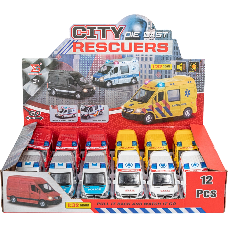 Το σετ με τα οχήματα διάσωσης City Rescuers είναι το ιδανικό παιχνίδι για μικρούς ήρωες που θέλουν να ζήσουν την εμπειρία διάσωσης! Με 3 ρεαλιστικά μοντέλα ασθενοφόρων σε διαφορετικά χρώματα και με ήχους και φώτα, τα παιδιά μπορούν να φανταστούν ότι είναι μέλη της ομάδας διάσωσης και να ανταποκριθούν σε κάθε επείγουσα αποστολή!