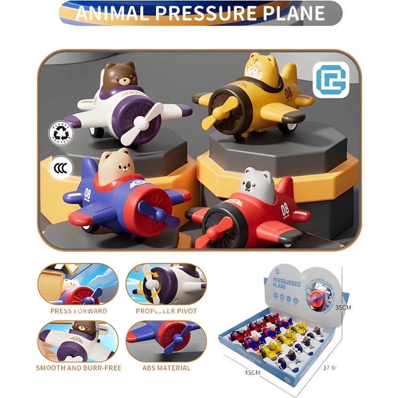 Περιγραφή: Είσαι έτοιμος για πτήση; ✈️ Τα αεροπλάνα με τα ζωάκια είναι έτοιμα να απογειωθούν με το πάτημα ενός κουμπιού! Πατώντας το κουμπί, τα αεροπλάνα με τα χαριτωμένα ζωάκια θα αρχίσουν να πετάνε, φέρνοντας τη διασκέδαση στον ουρανό! Ιδανικό για παιδιά που αγαπούν τα αεροπλάνα και τα ζώα, αυτό το παιχνίδι θα προσφέρει αμέτρητες ώρες χαράς και περιπέτειας!