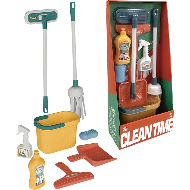 Το παιχνίδι Clean Time – Σετ Καθαριότητας είναι ένα εκπαιδευτικό και διασκεδαστικό παιχνίδι ρόλων για μικρά παιδιά που αγαπούν να μιμούνται τις καθημερινές δραστηριότητες των μεγάλων.