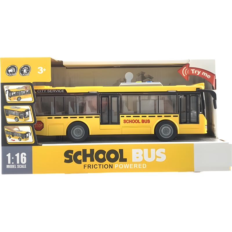 Το σχολικό λεωφορείο είναι έτοιμο να ξεκινήσει τη διαδρομή του! Με φώτα και ήχους, το παιχνίδι αυτό προσφέρει αληθινή εμπειρία σχολικής περιπέτειας. Μόλις το σπρώξεις, το λεωφορείο θα κινηθεί και θα ανάψει τα φώτα του, ενώ οι ήχοι του θα φέρουν τη χαρά της σχολικής βόλτας! Ιδανικό για παιδιά που αγαπούν τα οχήματα και την περιπέτεια, το λεωφορείο αυτό θα προσφέρει αμέτρητες ώρες διασκέδασης με κάθε κίνηση!
