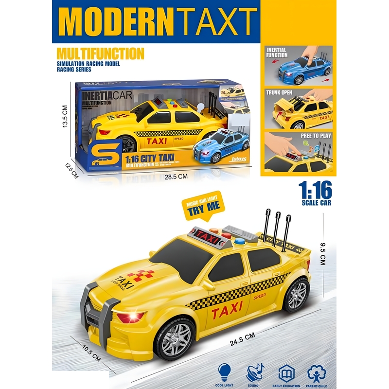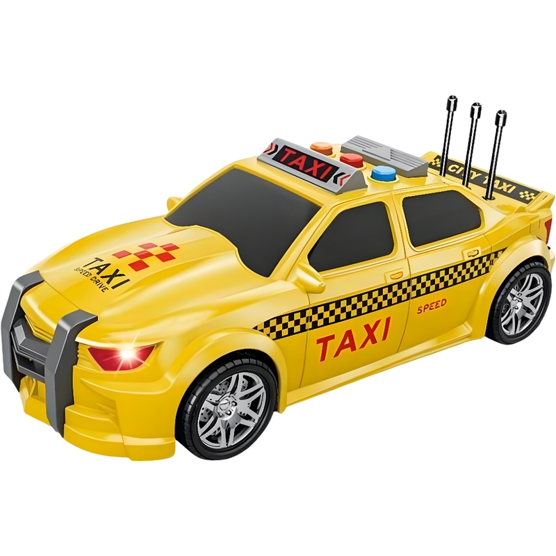 Είναι ώρα να ανέβεις στο πιο διασκεδαστικό ταξί! Το ταξί αυτό κινείται με τριβή και έχει φώτα που αναβοσβήνουν καθώς και ήχους για ακόμα πιο ρεαλιστική εμπειρία! Ανέβα στο ταξί και ξεκίνησε τη διαδρομή σου μέσα στην πόλη, με το αυτοκίνητο να κινείται γρήγορα και να κάνει ήχους σαν αληθινό! Ιδανικό για μικρούς οδηγούς που αγαπούν τα αυτοκίνητα και τις περιπέτειες στην πόλη, αυτό το παιχνίδι θα τους κρατήσει διασκεδασμένους για ώρες!