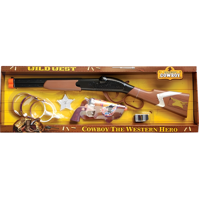 Γίνε ο πιο γρήγορος καουμπόης της πόλης με αυτό το σούπερ σετ Άγριας Δύσης! Περιλαμβάνει μεγάλο τουφέκι, πιστόλι, χειροπέδες, σήμα σερίφη και άλλα αξεσουάρ για να γίνεις ο απόλυτος ήρωας!