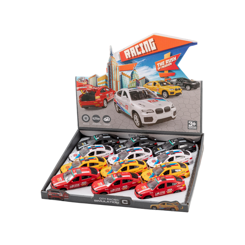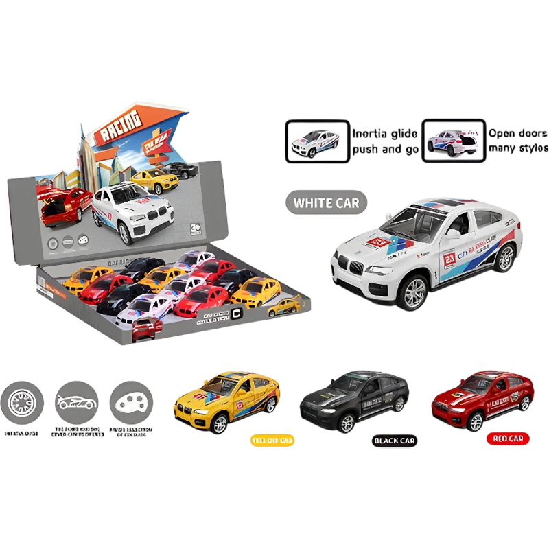 Η αγαπημένη συνήθεια των παιδιών είναι να παίρνουν μαζί τους τα παιχνιδάκια τους καθώς δένονται μαζί τους. Τα μεταλλικά αυτοκινητάκια εξυπηρετούν ακριβώς αυτό το σκοπό καθώς είναι μικρά και πολύ ανθεκτικά στα χτυπήματα. Διαθέτουν αυτοκούρδιστη κίνηση pullback για ωραίες βόλτες καθώς ενισχύει και τη κινηκότητα του παιδιού να το κυνηγάει και να το κουρδίζει από την αρχή. Τα αγωνιστικά αυτοκίνητα είναι διαθέσιμα σε 4 χρώματα και ανοίγουν οι πόρτες τους.